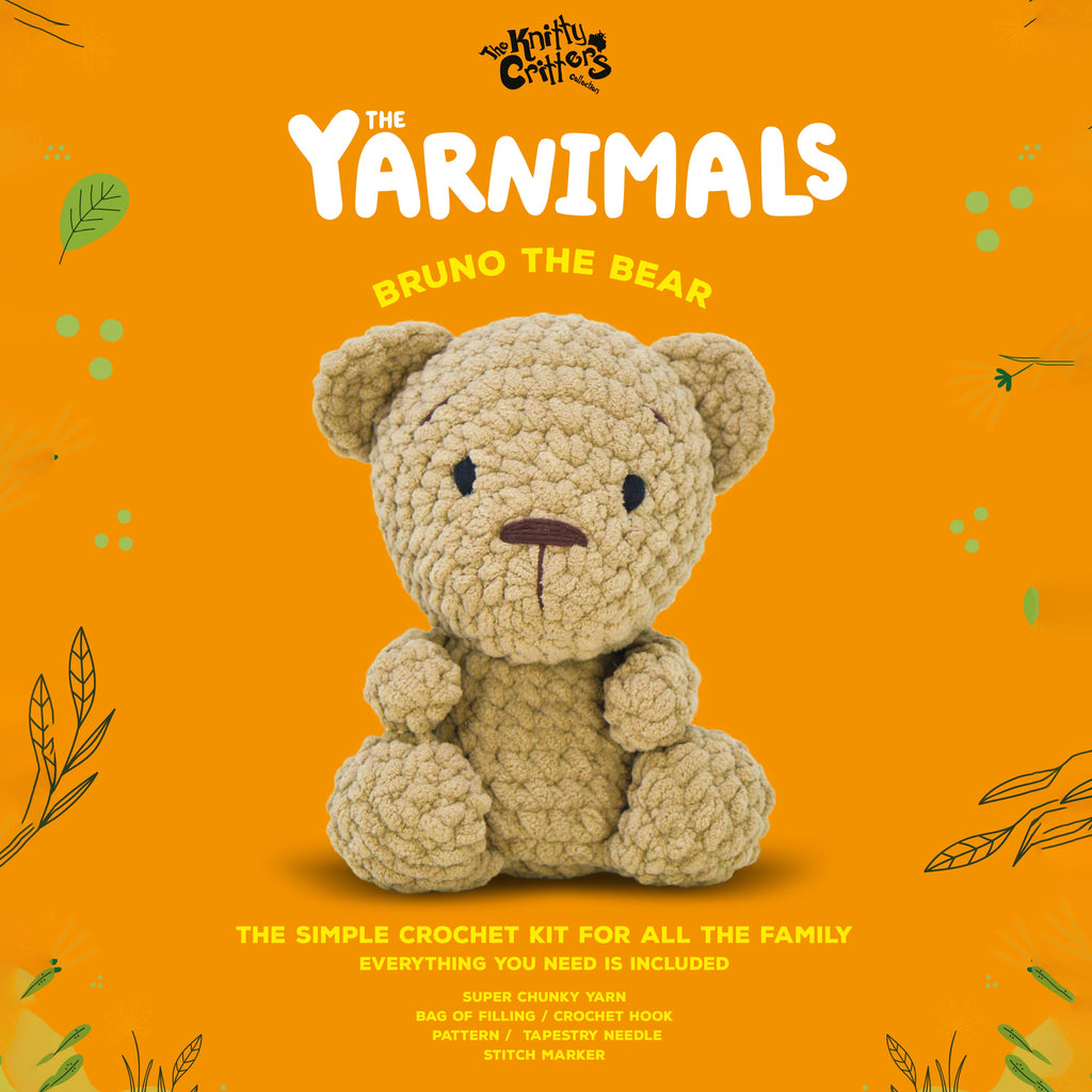 Knitty Critter Crochet Kit - Yarnimals - Bruno The Bear