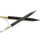 The needle tips of these fixed circular needles are made of ebony, one of the world's most valued woods sourced from Indian government authorised wood stock yards. The liquid silk finish on the lightweight needles, plus the 24K gold finish on the brass connectors guarantee snag free knitting. The nylon coated, stainless steel cord never twists, thanks to a swivel connector, and it lies flat for easy storage. Smoothly honed and shaped needle tips work well with all yarns.