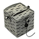 The Knit Out box is a cube shaped box specially designed to hold individual balls of yarn. A keyhole opening in front allows yarn to feed out, and a closed top lid keeps the precious material contained. A button-hole closure with top and bottom handles makes this portable yarn holder quite elegant. The modal satin knit out box is made using traditional "Ikat" fabric. This design is achieved by tie-dying different yarns before weaving, resulting in a subtle blend of colour.