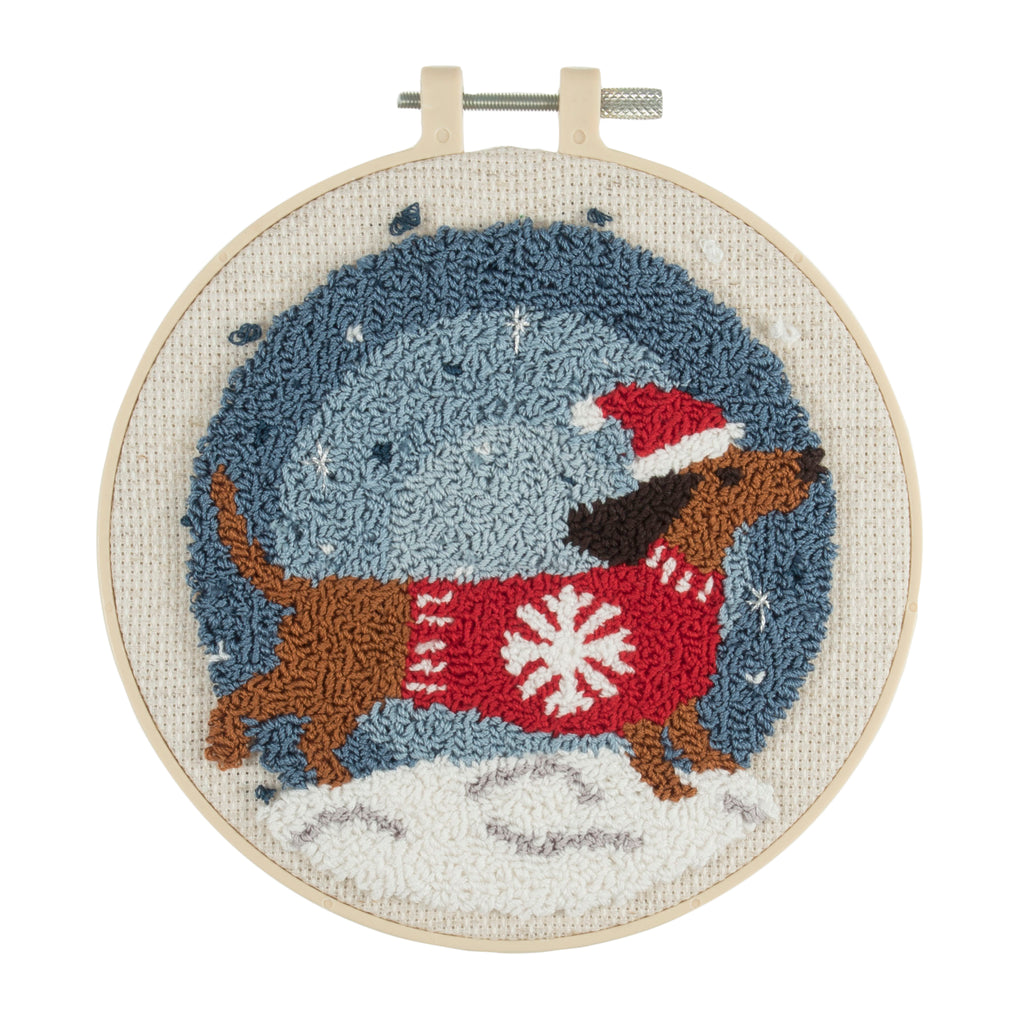Punch Needle Kit: Floss and Hoop: Festive Dachshund
