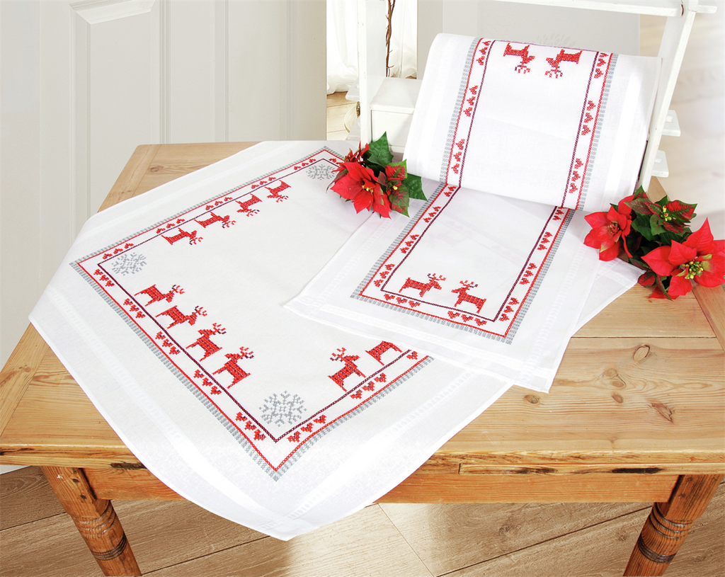 Vervaco Embroidery Tablecloth Kit - Red Reindeers PN-0147491