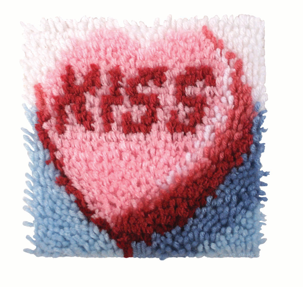 The Wonderart Kiss 8" x 8" Kiss latch hook kit is an easy-to-make project that you can take up during your leisure time. Create a lush and attractive rug from this latch took kit and use it as a decorative accent for your home.